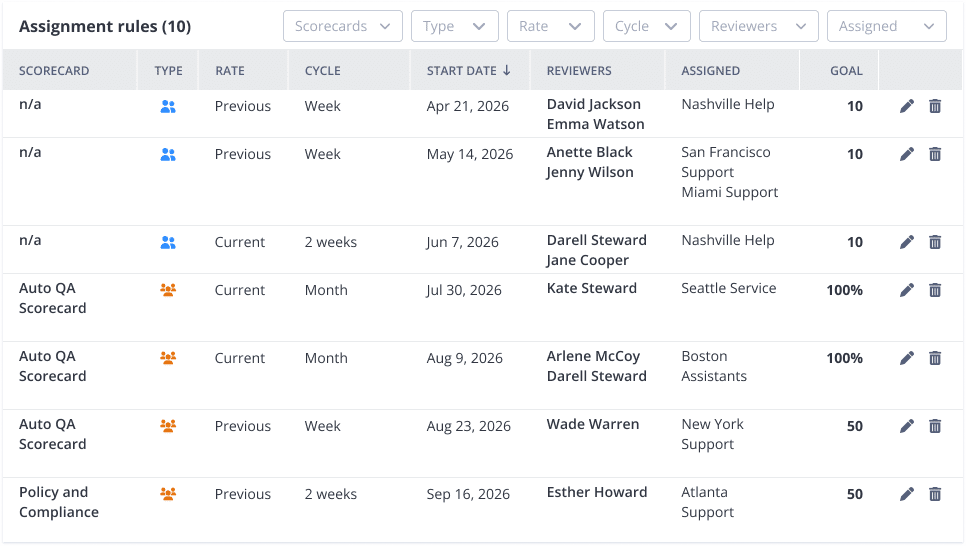 Use Assignments to give manual reviewers an equal, consistent distribution of tasks, targeting the most impactful conversations. Run calibration sessions to align your QA team on edge cases and evolving standards.